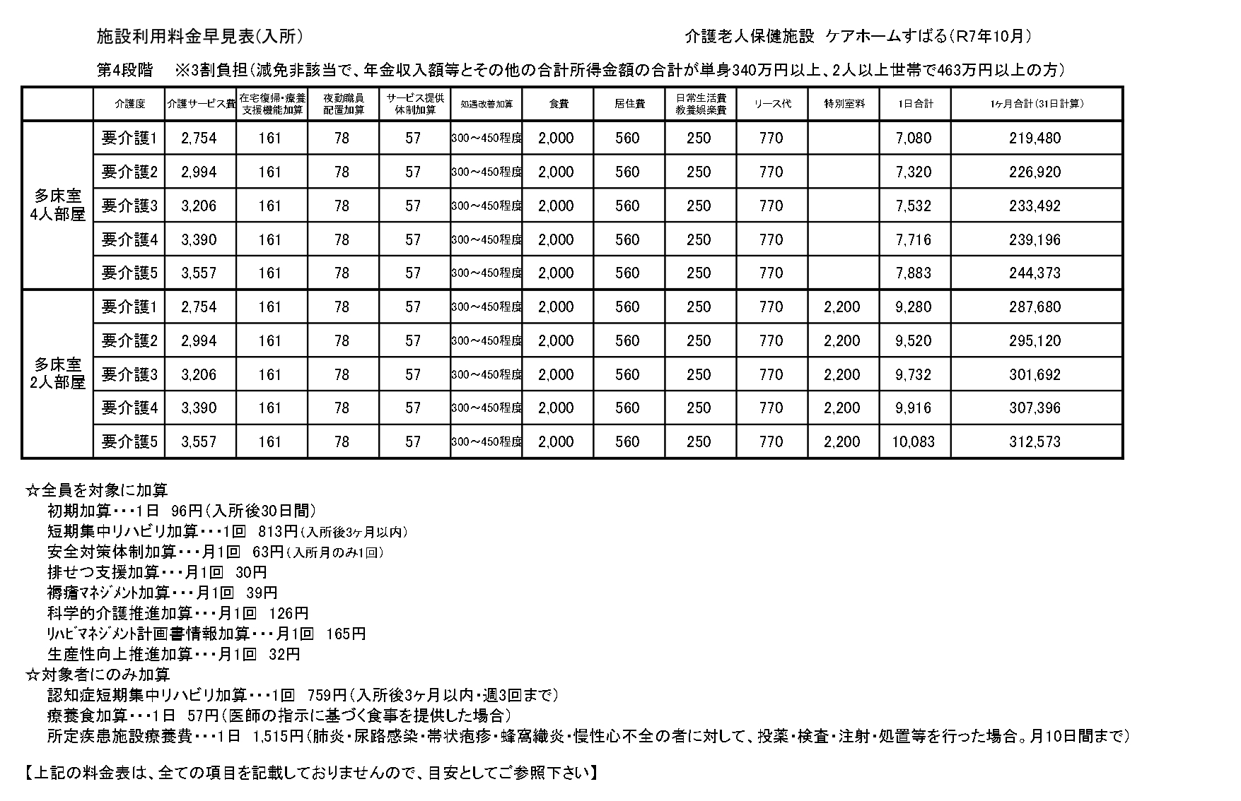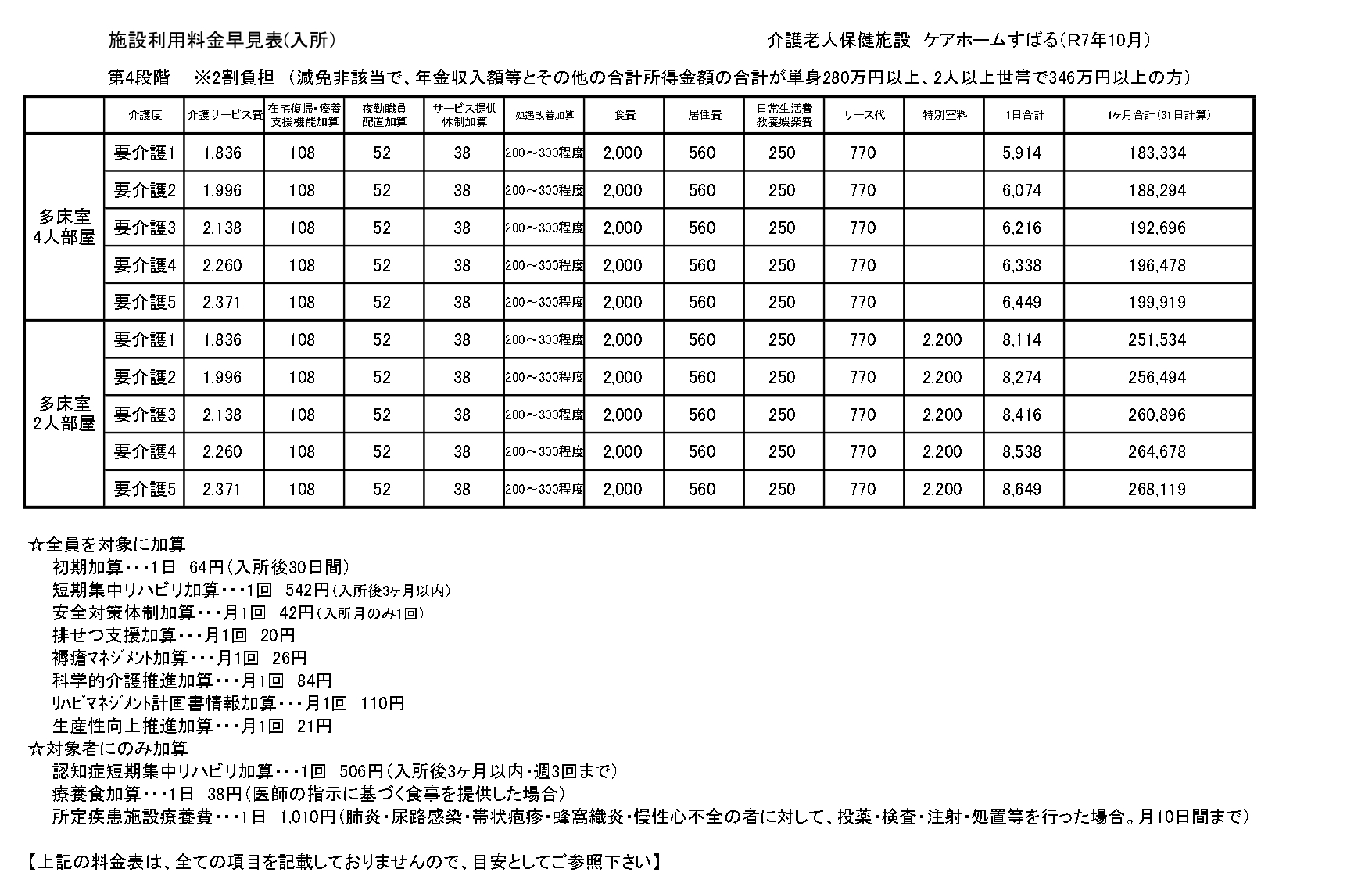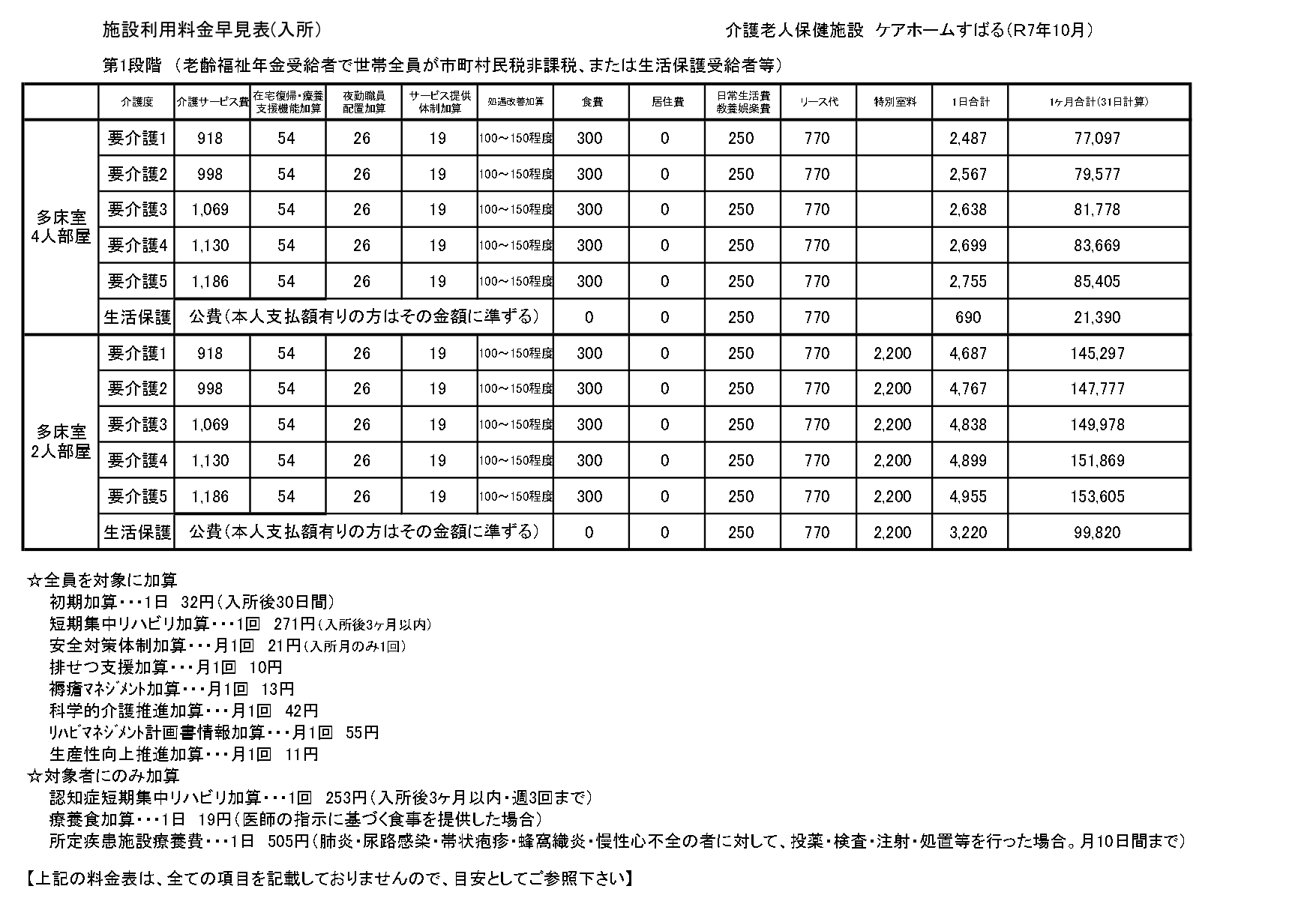 ■入所サービス料金