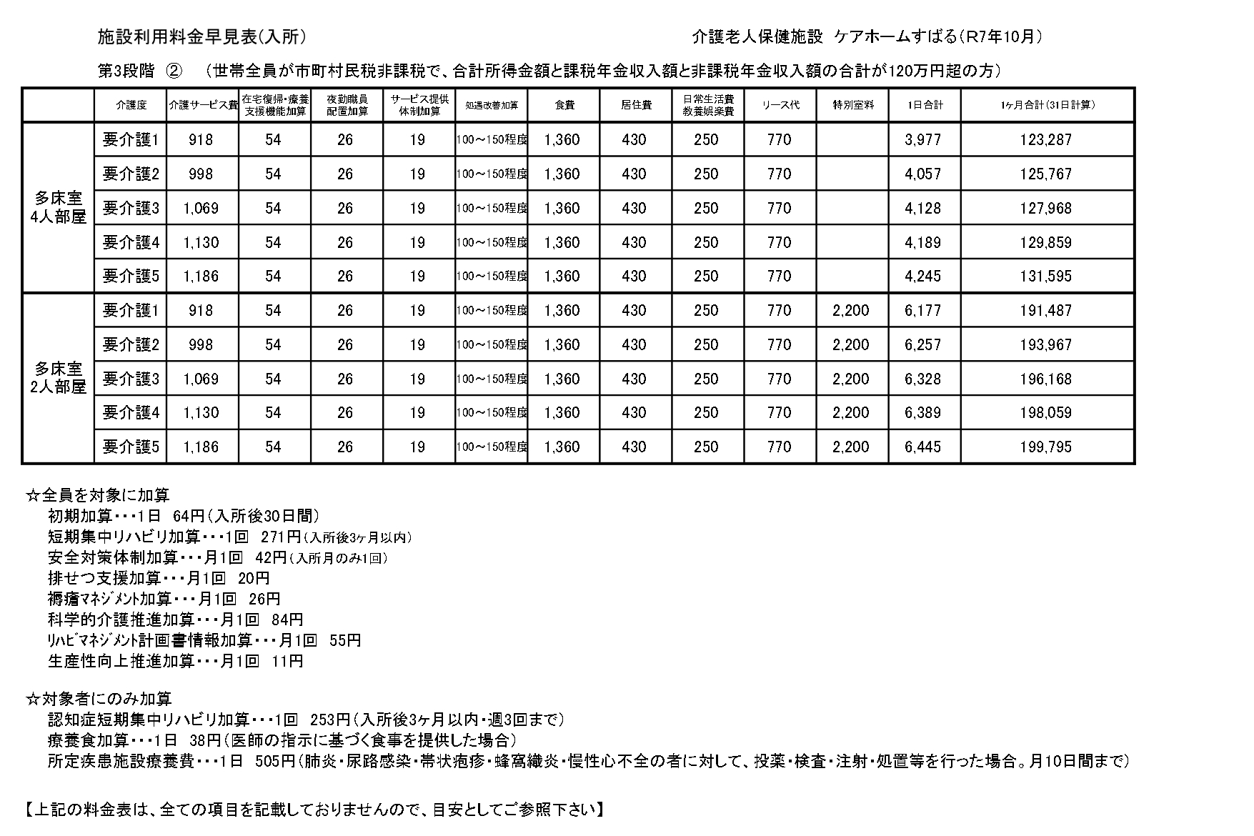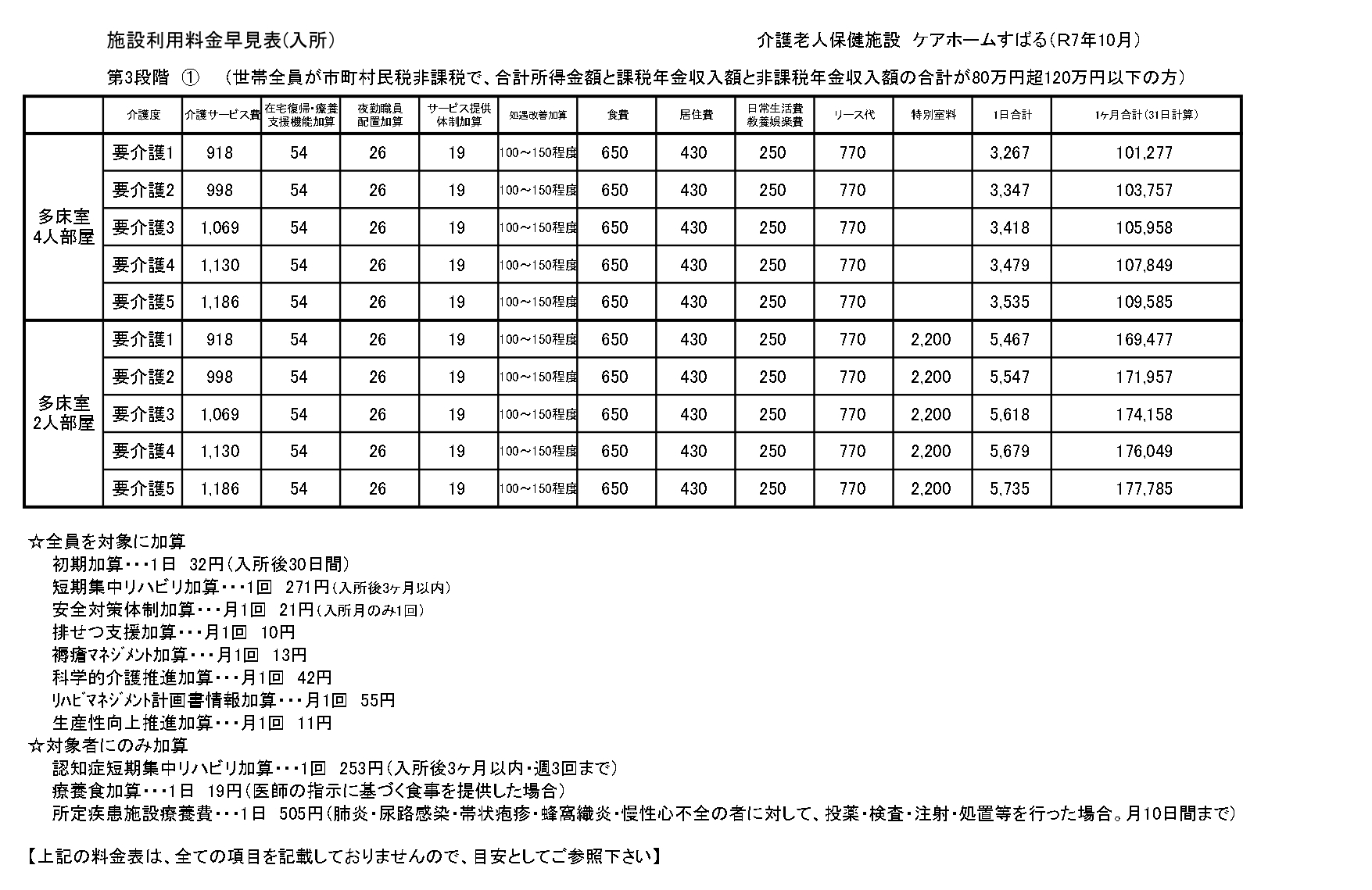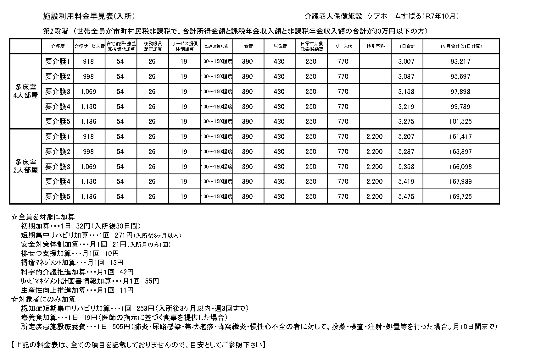 ■入所サービス料金