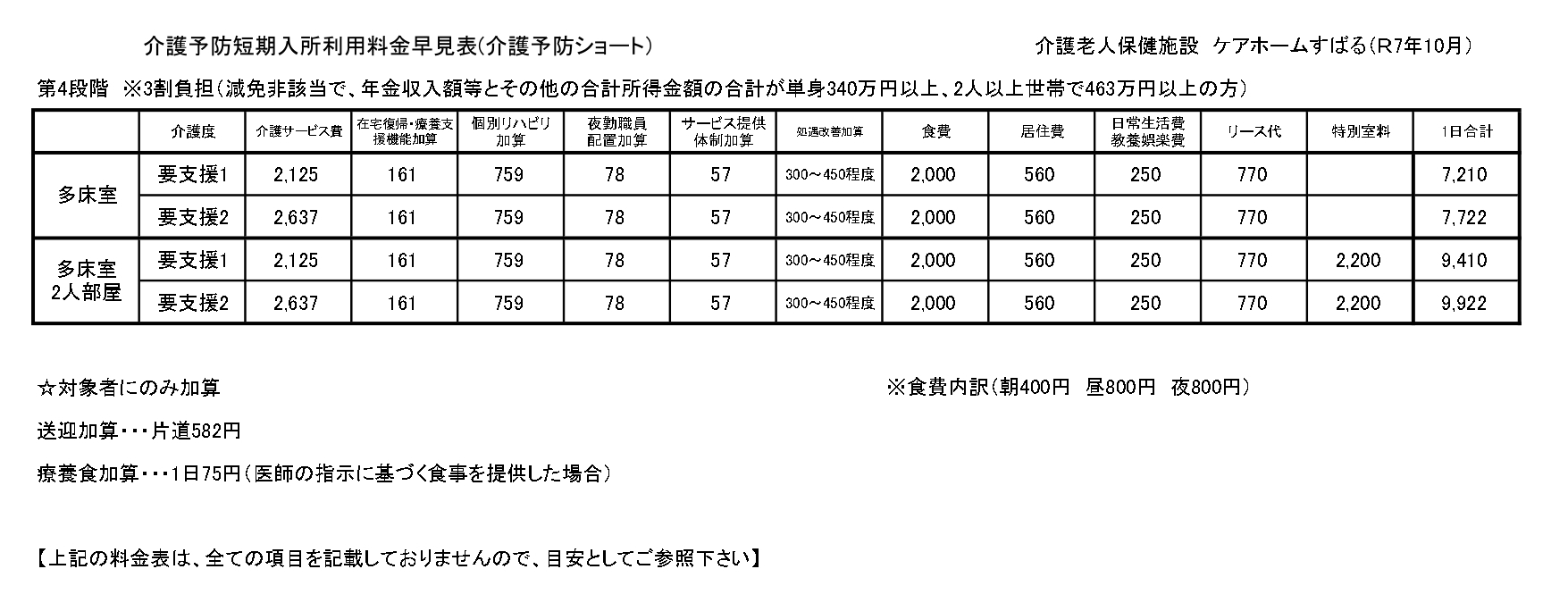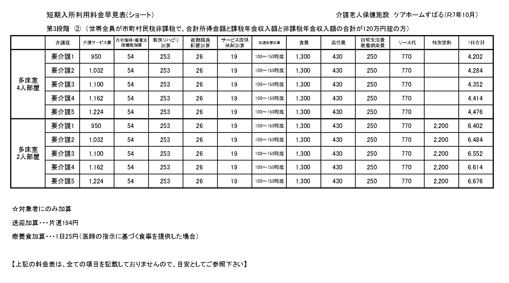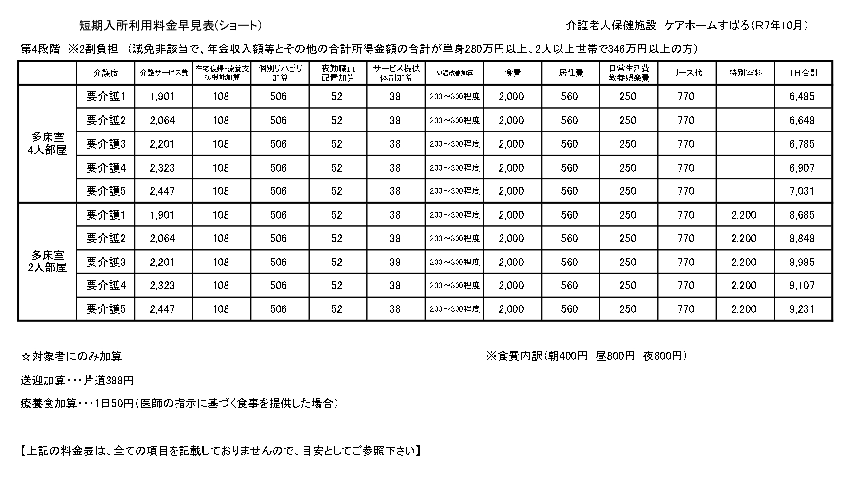 ■短期入所療養介護(ショートステイ)サービス料金