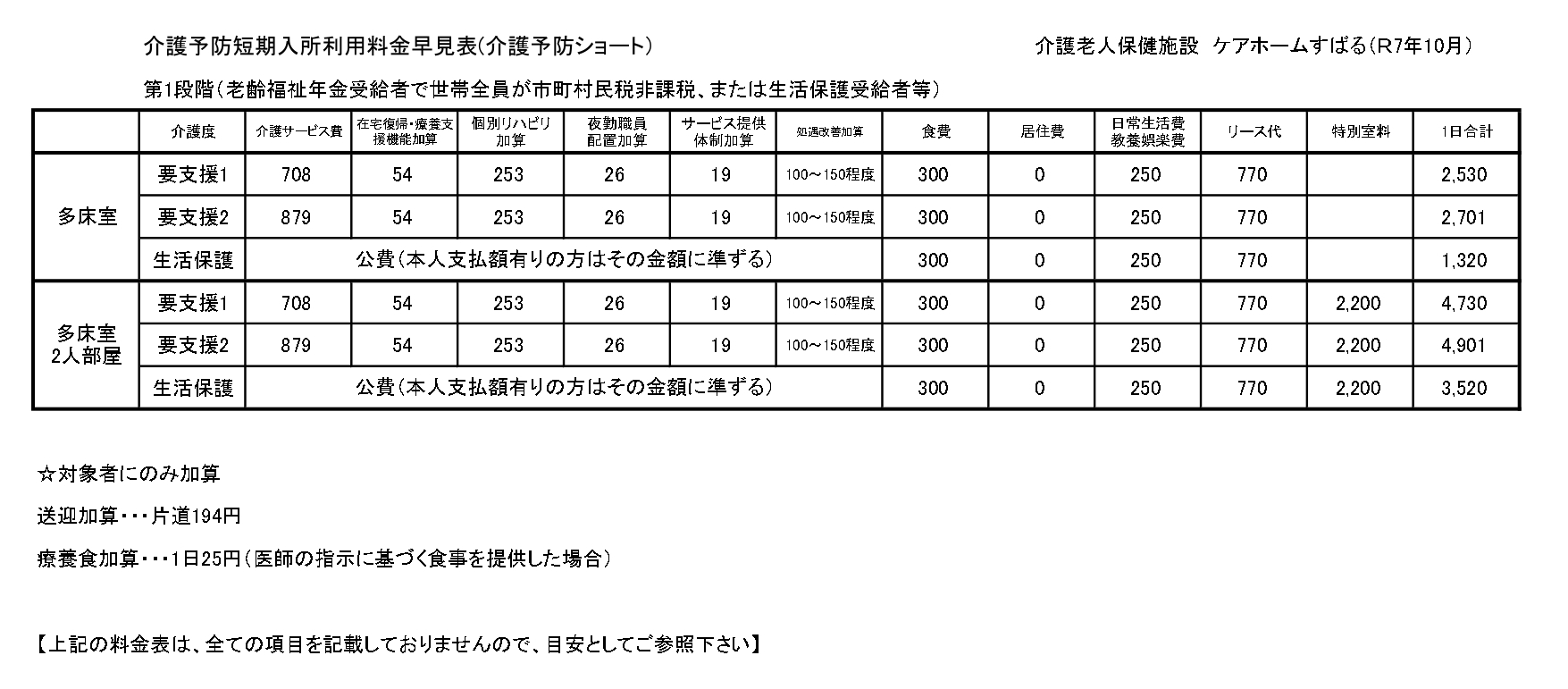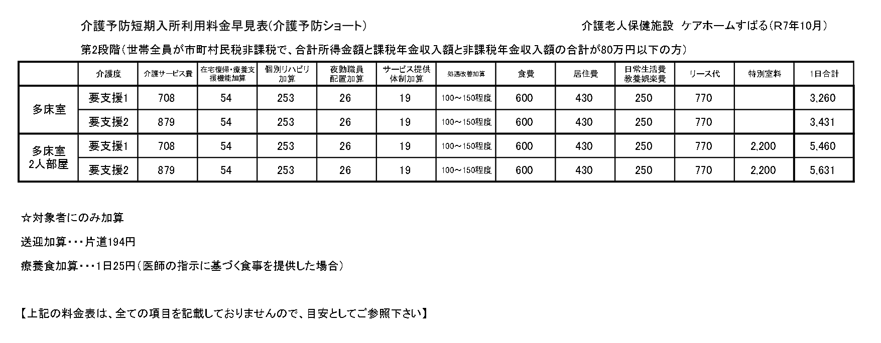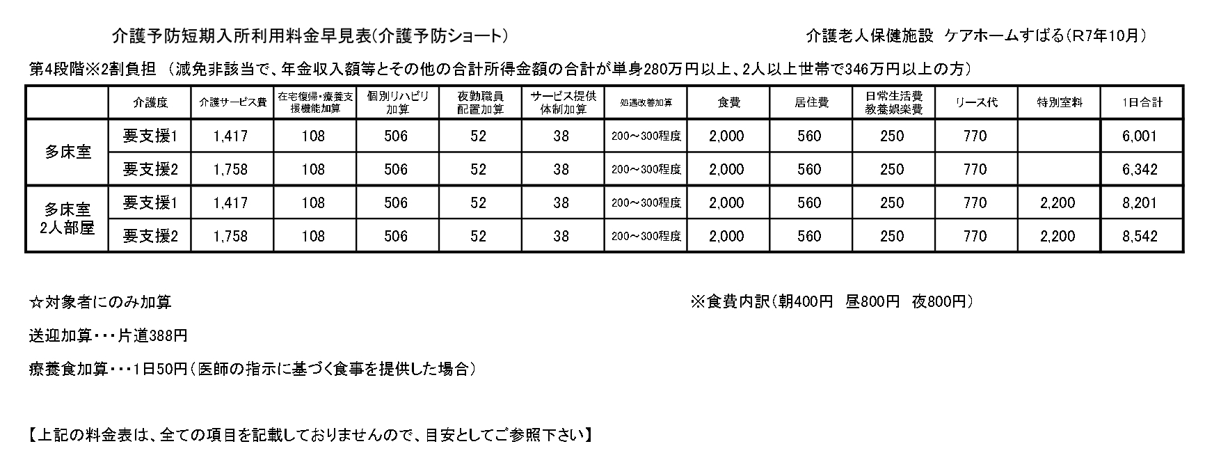 ■予防ショートステイサービス料金